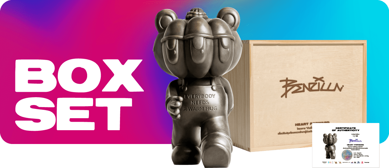 แรงบันดาลใจ และจุดเริ่มต้นของ Art Sculpture คอลเล็คชั่น “HEART FORWARD” จากความตั้งใจที่จะเปลี่ยนความรักและความหลงใหลในงานศิลปะ สะท้อนออกมาเป็น Art Sculpture ที่เต็มไปด้วยความหมาย ส่งต่อก้าวสำคัญของการช่วยเหลือเพื่อเยียวยาผู้ป่วย ผ่านการออกแบบที่ประณีตในทุกขั้นตอน จาก 3 ศิลปินชั้นนำของไทย
