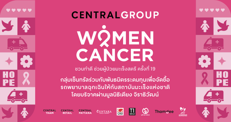 กลุ่มเซ็นทรัล และบริษัทในเครือ สานต่อโครงการ “Central Group Women Cancer” ครั้งที่ 19 ชวนทำดี ช่วยผู้ป่วยมะเร็งสตรี ด้วยการเชิญชวนลูกค้า ประชาชน บริษัทในเครือและคู่ค้า ระดมทุนจัดซื้อรถพยาบาลฉุกเฉินให้กับสถาบันมะเร็งแห่งชาติพร้อมสนับสนุนโครงการพัฒนาสังคมและคุณภาพชีวิตอื่นๆ เพราะเราเชื่อว่า การทดแทนหรือการมอบในสิ่งที่สถานพยาบาลต่างๆขาดแคลนไม่ว่าจะเป็นเครื่องมือหรืออุปกรณ์ทางการแพทย์ รวมไปถึงงบประมาณใช้จ่ายอื่นๆ จะเป็นตัวผลักดันให้ผู้ป่วยหรือกลุ่มคนที่ด้อยโอกาสได้มีคุณภาพชีวิตที่ดี เข้าถึงการรักษาที่รวดเร็วและทันท่วงที และยังเพิ่มโอกาสในการรักษาให้หายขาดได้